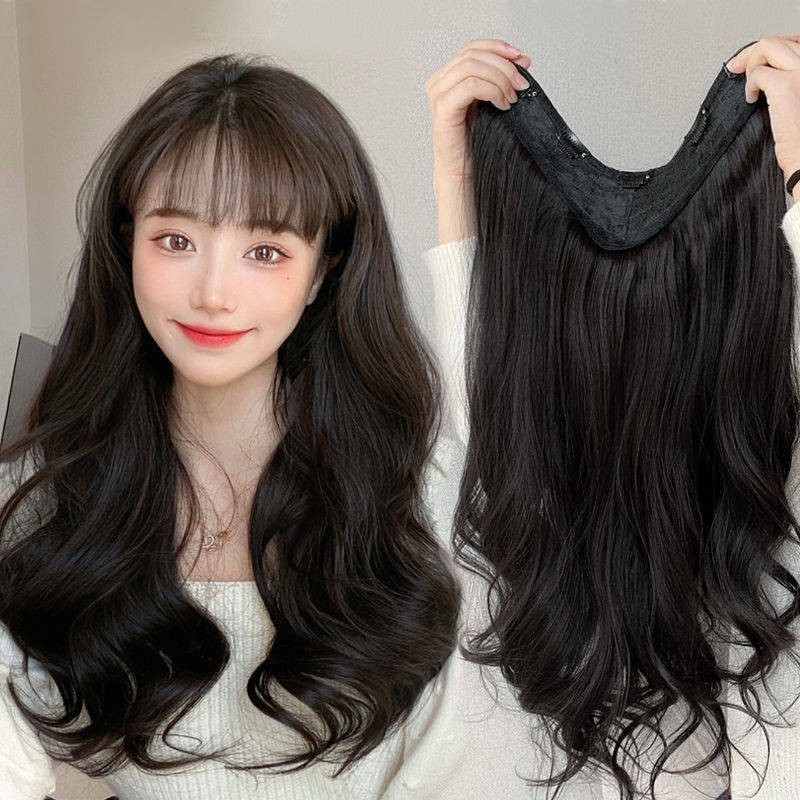 Bangs Wig Smooth Hair Wigs For Women Wig Haired Female Long Hair Big Wave Long Curly Hair Net Red One U Shaped No Trace Shopee Malaysia